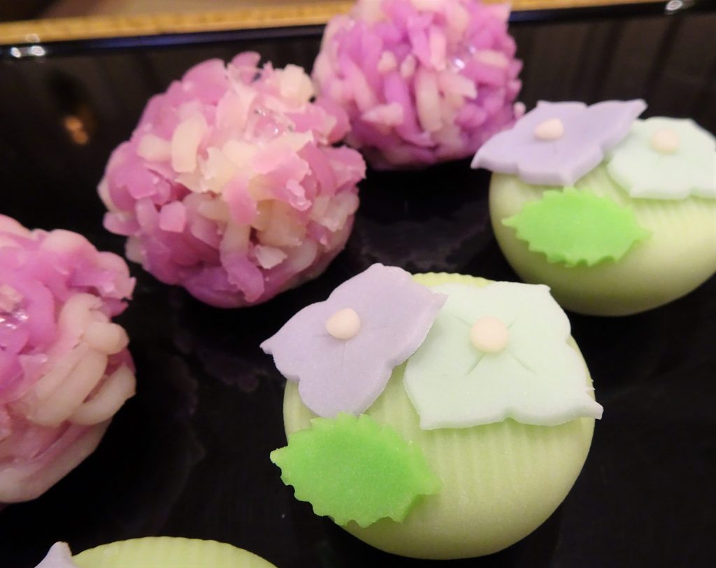 和菓子のデザートビュッフェで、ゲストをおもてなし。ここにもあじさい(*^^)♡